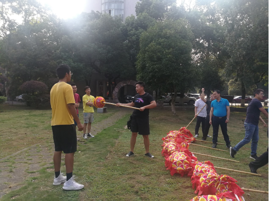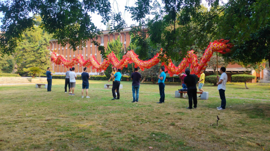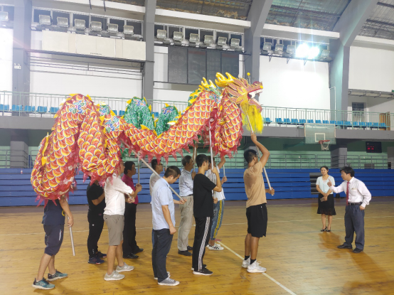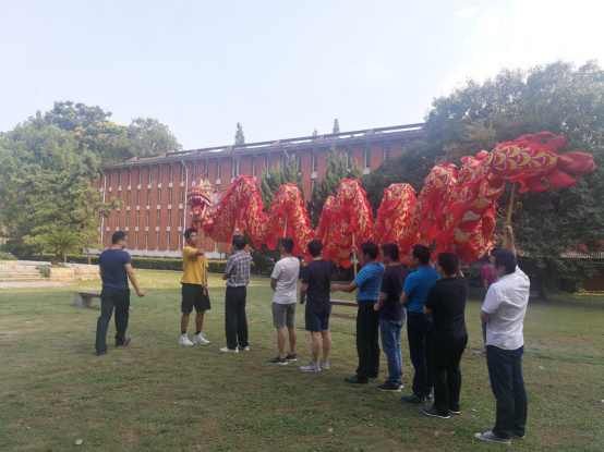 学院教职工舞龙队的队员们,在紧凑的科研、教学、工作以及学习之余,兴致高昂地挤出时间在一起训练与交流心得。因为他们不仅仅希望能够通过自己的努力大力弘扬中华民族的优秀传统文化,更是想将拳拳爱国之心融入到日常训练的每一个动作之中,为祖国的繁荣昌盛与人民的幸福安康欢呼喝彩。终于功夫不负有心人,他们站在南校礼堂上用欢腾的舞龙为建国70周年献上最衷心的祝福。