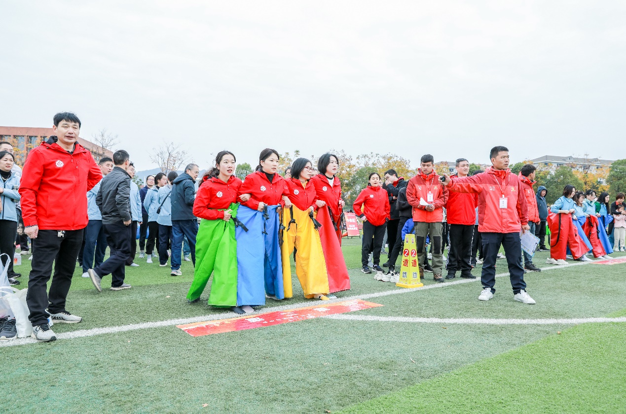 本次趣味运动会以团体项目为主,集协作性、娱乐性和竞争性于一体。在“趣味飞盘”项目中,教职工们身手敏捷,准确地将飞盘一个个掷入最高分值“9”的方框中,赢得了阵阵掌声;在“屹立不倒”项目中,运动员围成一圈,紧随口令节奏一致,迅速、准确地接稳前方队友传递来的充气柱,充气柱稳如泰山、屹立不倒;“快乐一起拼”项目是智力和体力的双重比拼,队员们快速、有序、准确地将一块块拼图放置在合适位置;在“共赴未来”项目中,教职工们将左右腿分别套在形似皮筏艇的道具中,喊着统一的口号、迈着整齐的步伐奋力向前;在“齐心协力”项目中,大家四人一组,套着连体裤一同向着终点奋力奔跑。整场运动会竞技性、趣味性十足,赛场气氛欢快活跃,大家尽享运动带来的快乐时光,也充分展现了yl7703永利集团团结协作、积极向上的精神风貌。